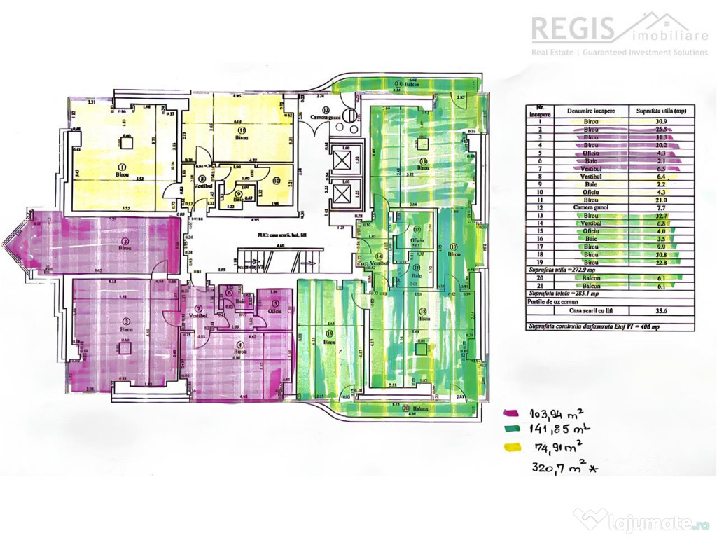 - Suprafete de 272 si 277 mp utili pe etaj