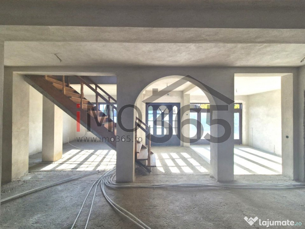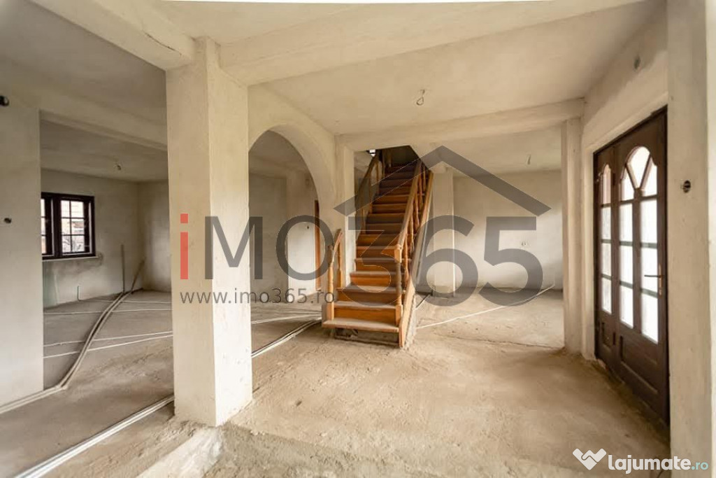 Interior neamenajat, la stadiul de glet. Terenul este imprejmuit, utilitatile trase in casa.