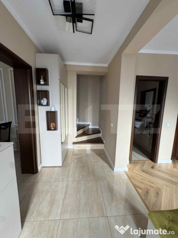 Se oferă spre vânzare un apartament modern cu 3 camere, având o suprafață utilă de 100 mp, situat într-un ansamblu rezidențial recent construit, într-o zonă liniștită și bine conectată la facilitățile urbane.Locuința este dispusă pe două niveluri și se remarcă printr-o compartimentare funcțională și echilibrată, gândită pentru confort și intimitate: