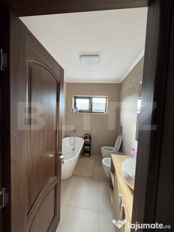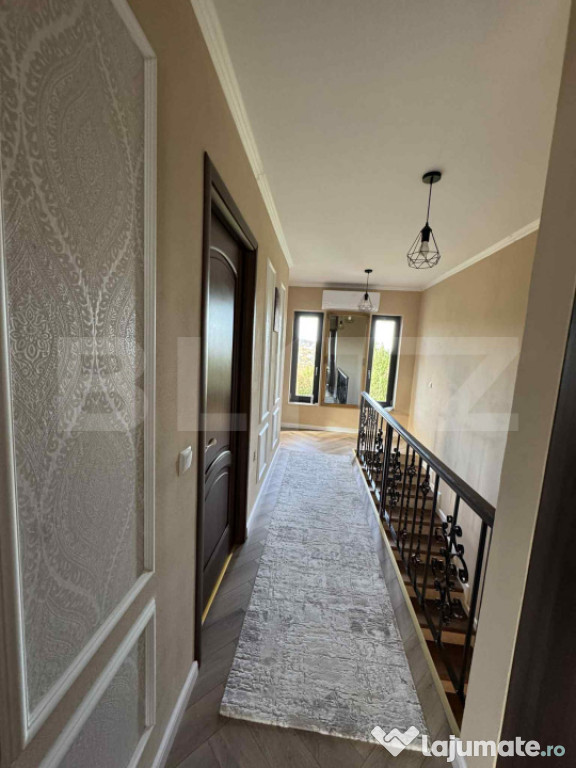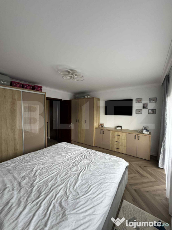 Etaj: două dormitoare confortabile, baie principală și dressing spațios.