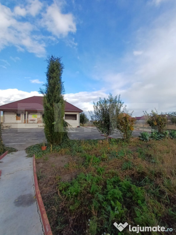 Curtea este betonata, gradina este amenajata cu alei betonate si dotata cu apa trasa din fantana. Exista zona de legume si livada cu pomi. Proprietatea este imprejmuita pe toate laturile.