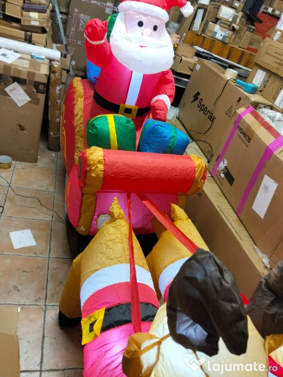Figurina gonflabila cu ventilator inclus, reprezinta un mos in sania trasa de 2 reni. ...