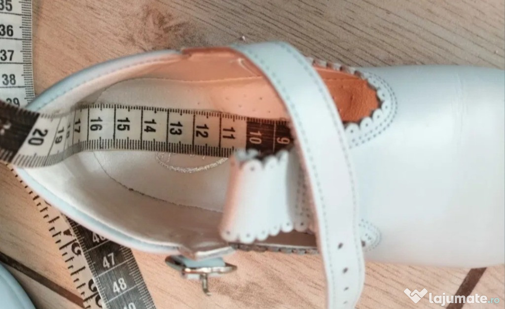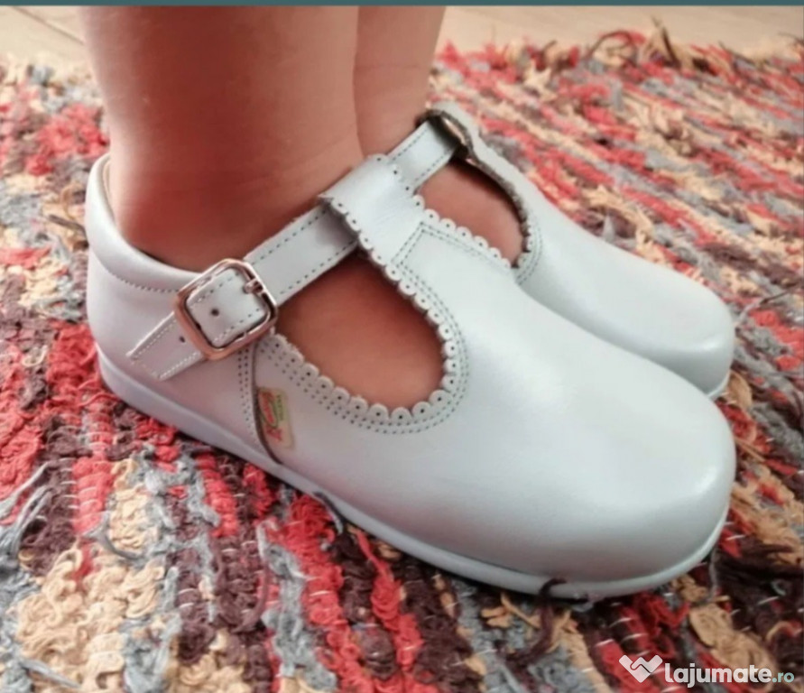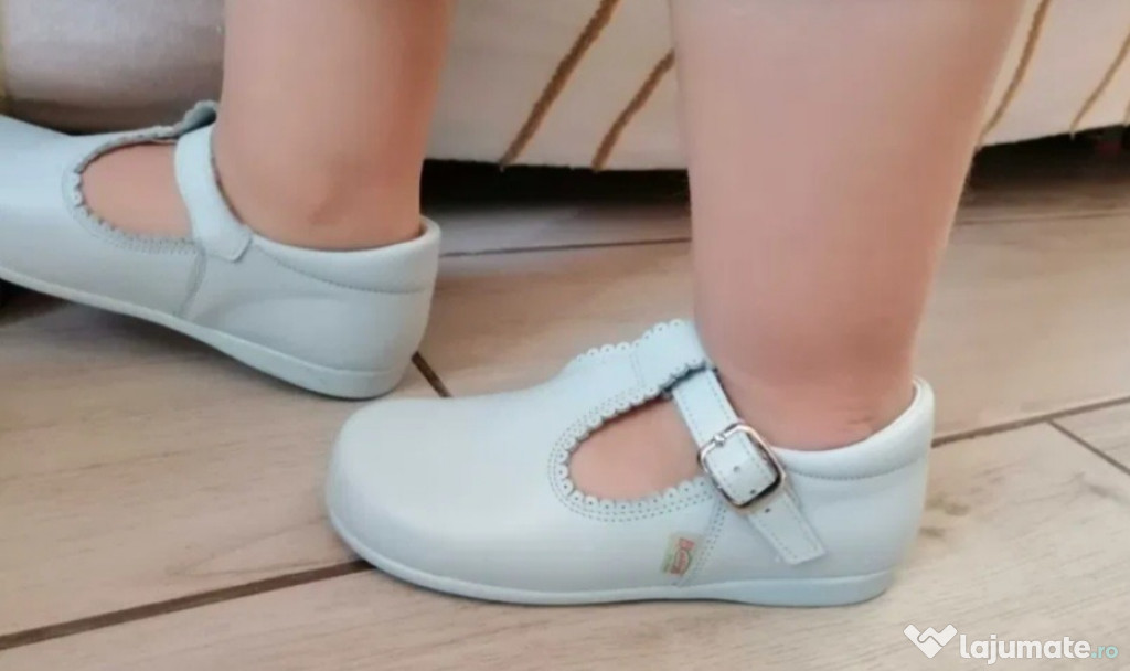 Sunt confecționați din piele naturala subțire moale interior exterior. Recomandabil unui copilaș cu picioruș lat. Măsoară pe interior 15.5 cm.