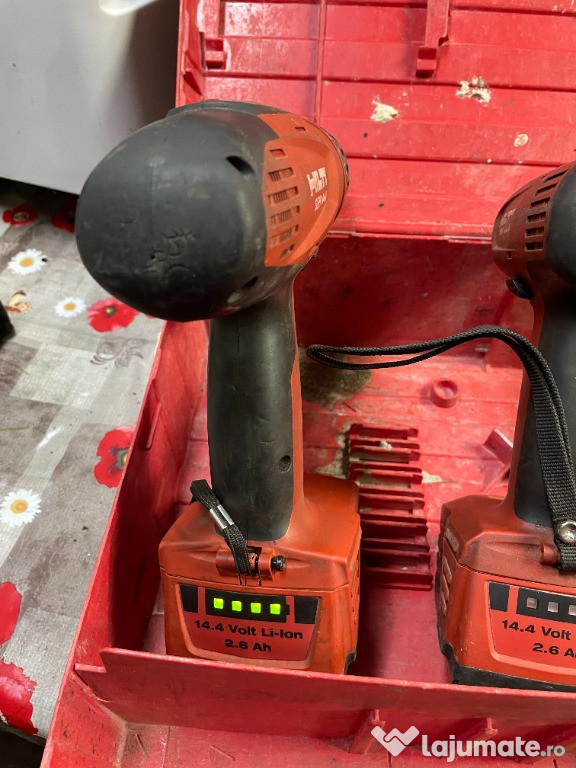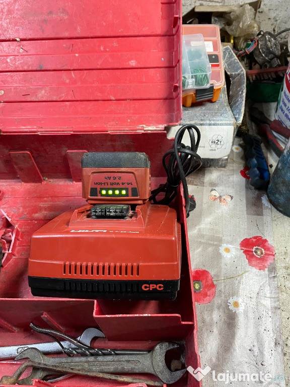 Stare perfecta de functionare 3 acumulatori si incarcator rapid si cutie totul in stare perfecta,Se vinde tot ce se vede in poze iNCARCATORUL MERGE SI LA ALTI ACUMULATORIProducător: HILTI