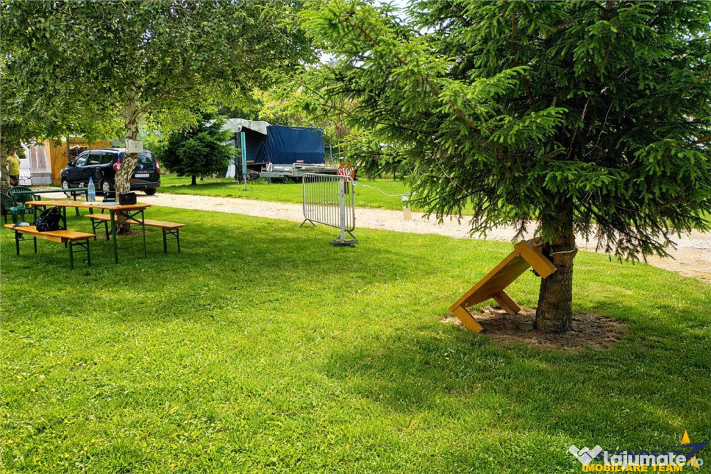propune spre vanzare o OPORTUNITATE materializata prin teren intravilan de 7700 mp , perfect plan si ingradit. O suprafata de 2312 mp are regim de teren constructii case, iar pe un lot de 1334 mp avem deja construita o casa P E de 80 mp. Restul terenului este destinat activitatii turistice - camping. Pretul include si echipamentele necesare intretinerii si desfasurarii activitatii de turism- 3 rulote, tractoras cu utilaje intretinere gazon,plug, freza,lama zapada, platforma remorca, 2 containere birou, un container dusuri. Imobilul e dotat cu camere de luat vederi, panouri solare si tot ce e necesar pentru o activitate in domeniu.