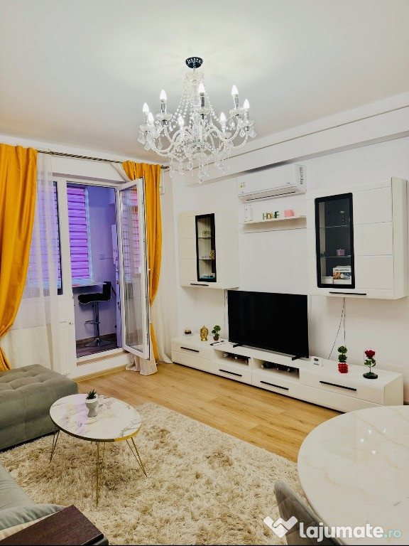 Proprietar, vând apartament cu 2 camere, complet mobilat si utilat, situat in Militari Residence, pe strada Rezervelor, vizavi de centrul comercial La Strada.Se afla la etaj intermediar, intr-un bloc amplasat central, la doar 1 minut de mers pe jos de statia STB. Dispune de centrala proprie, aer conditionat, masina de spalat cu uscator si toate electrocasnicele necesare.