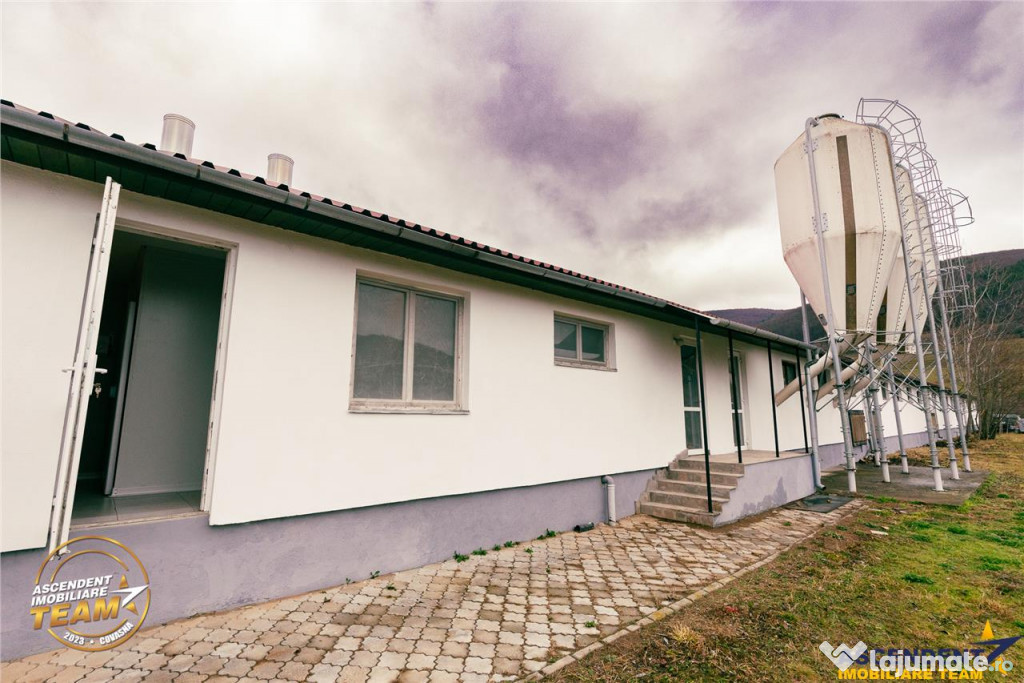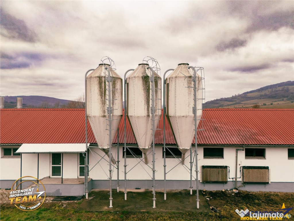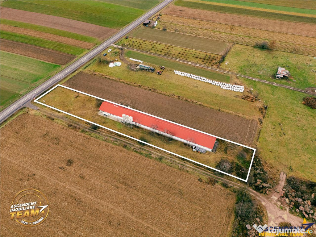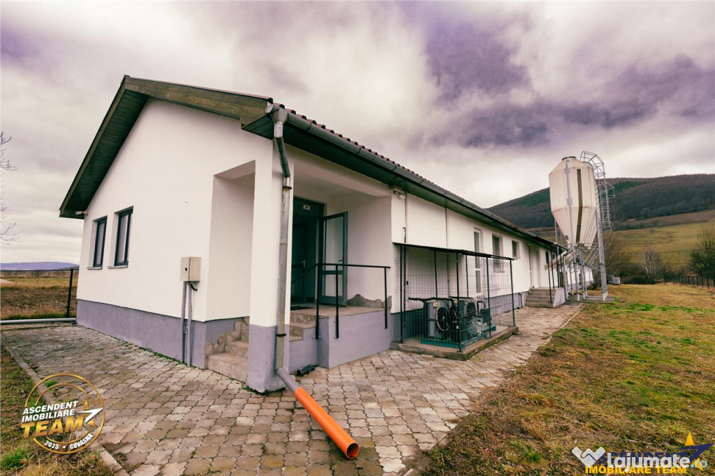Pe teren se afla o cladire existenta, pe un singur nivel, cu o suprafata construita de 871 mp si o suprafata utila de 794 mp, ce poate fi utilizata ca spatiu de birouri, productie ori depozitare. Conform planului urbanistic local, terenul este oficial destinat cresterii si productiei animale, oferind astfel posibilitati multiple pentru continuarea sau transformarea activitatii.
