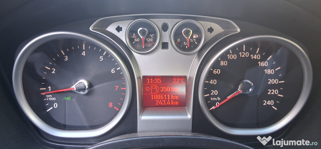 Ford Focus cu motor 1.6 benzina, clasic aspirat de 101cp, anul 2008, cutie manuala, 189.000 km. Tehnic este de nota 10, estetic prezinta mici imperfectiuni specifice varstei. Un singur proprietar de noua. Cu abs, servo, aer conditionat functional, computer de bord, geamuri / faruri / oglinzi electrice incalzite, radio cd original cu comenzi la volan, semnalizari pe oglinzi, inchidere din telecomanda, volan reglabil pe inaltime / adancime, 2 chei, si acte valabile. Ofer fiscal pe loc. Exclus variante. Poate fi vazuta in orasul ConstantaAnuntul Ford Focus Facelift este adaugat de pe LaJumate.ro.