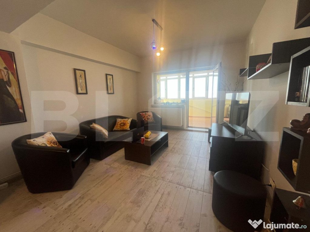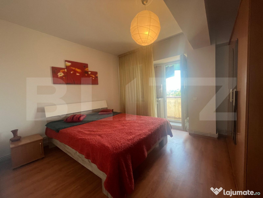 Blitz va propune spre inchiriere un apartament cu 3 camere, semidecomandat, la etajul 4 al unui bloc cu 4 etaje, situat in cartierul Craiovita Noua, zona Segarcea.Compartimentarea imobilului este facuta astfel: hol, living open space cu bucataria, doua dormitoare, bucatarie, baie si doua balcoane de 7 si 13 mp. Incalzirea apartamentului este facuta cu centrala termica proprie si beneficiaza de aparat de aer conditionat, masina de spalat rufe, aragaz, cuptor cu microunde, cafetiera si doua televizoare.