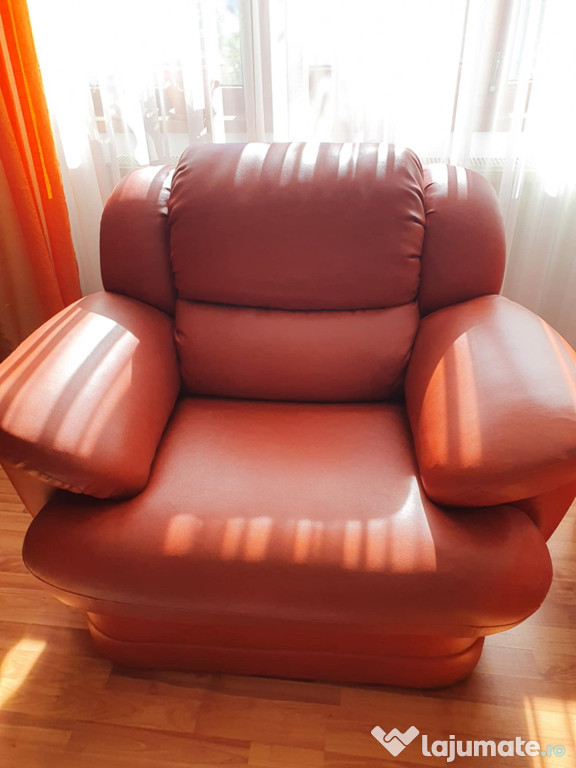 Vând două fotolii piele naturală, comode și bine întreținute, potrivindu-se perfect pentru un living sau un birou. Nu prezintă rupturi, cute sau defecte.