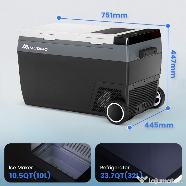 Frigider auto portabil Mudiro 45L cu roți și aparat de gheață - 12V