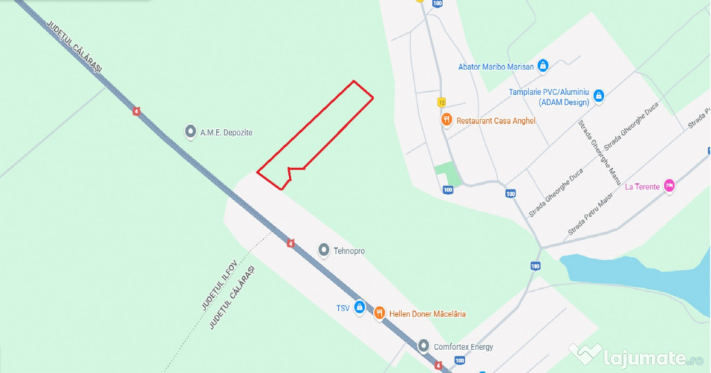 Am placerea sa va propun spre vanzare teren extravilan cu suprafata de 7.630 mp, cu deschiderea de 28 ml, situat inainte de intrarea in satul Orasti, comuna Frumusani, la o distanta de 6 km de Autostrada de Centura si 80 m din DN4.Lotul este bine amplasate, detine drum din sosea pe toata lungimea lotului pana la garla, cu acces direct la strada, la limita terenului se afla toate utilitatile: apa, canalizare, curent, gaze.