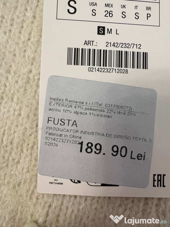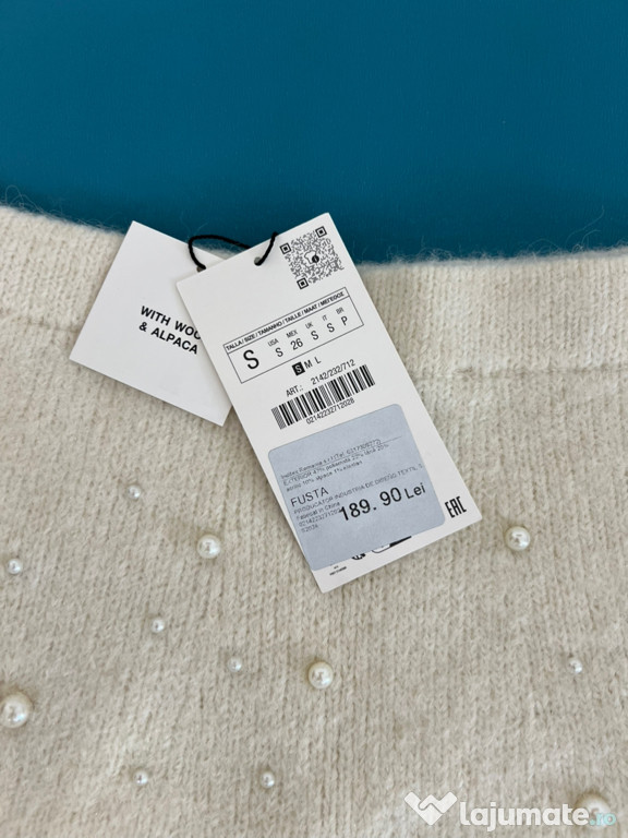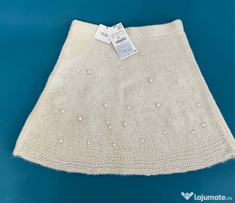 Fustă scurtă tricotată , material cu lână și alpaca , cu perle de mai multe dimensiuni, este nouă , cu etichetă, o piesă frumoasă, deosebită .Este plăcută , elegantă , călduroasă . Mărimea S.Anuntul Fustă noua Zara, S, cu perle este adaugat de pe LaJumate.ro.