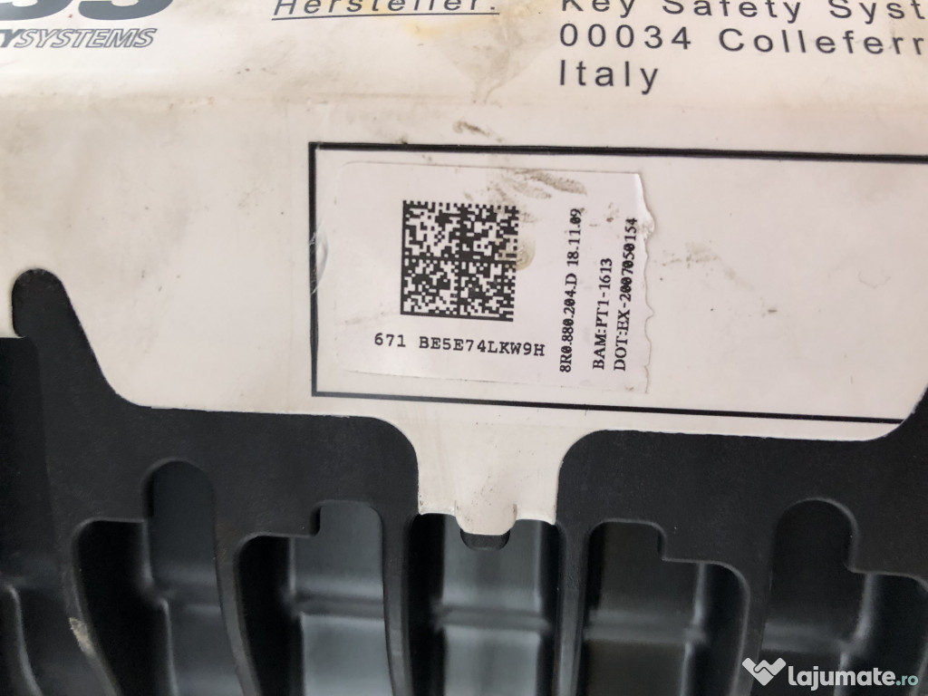 Airbag pasager Audi Q5 2010. Cod(uri): 8R0880204D. Piesele comercializate sunt originale, provenite din dezmembrari. Dispunem de o gama larga de piese multimarca. Piesele sunt verificate inainte de a fi puse spre vanzare. In caz de neconformitate piesa se poate returna. Va rugam sa verificati disponibilitatea pieselor telefonic. Trimitem in tara prin curier.Marcă: Audi
