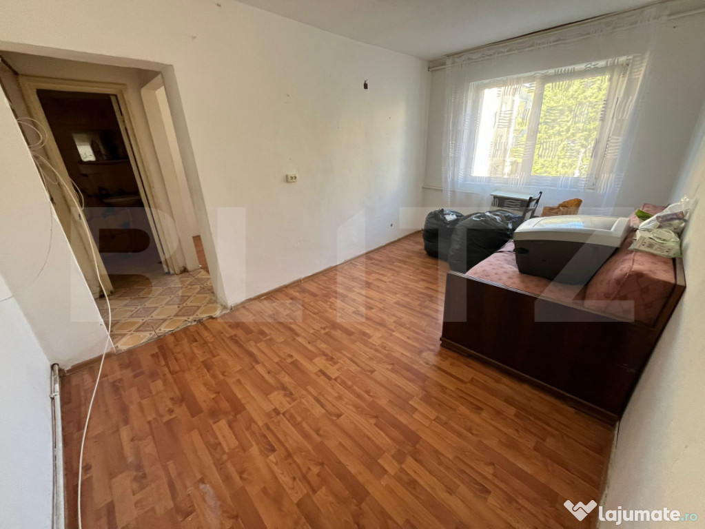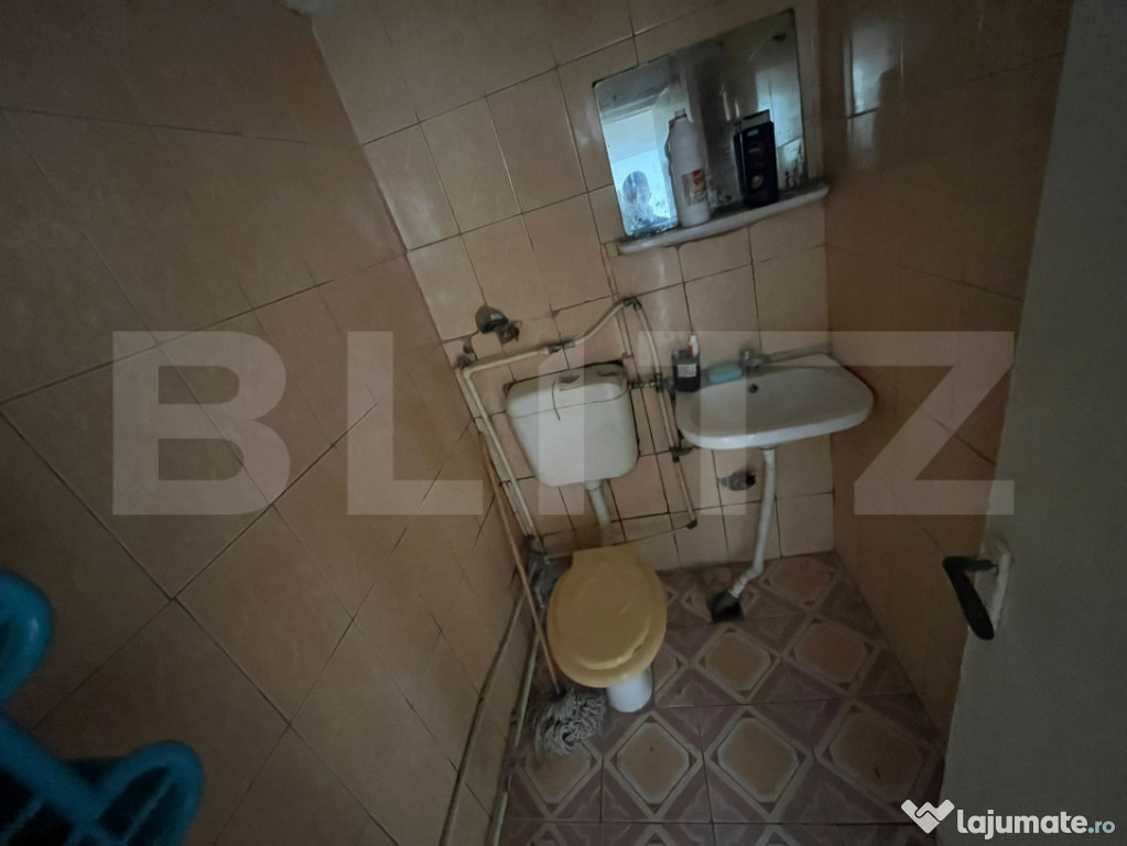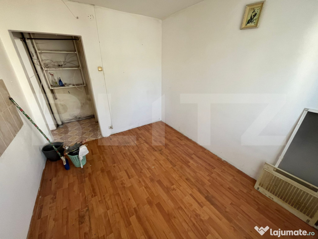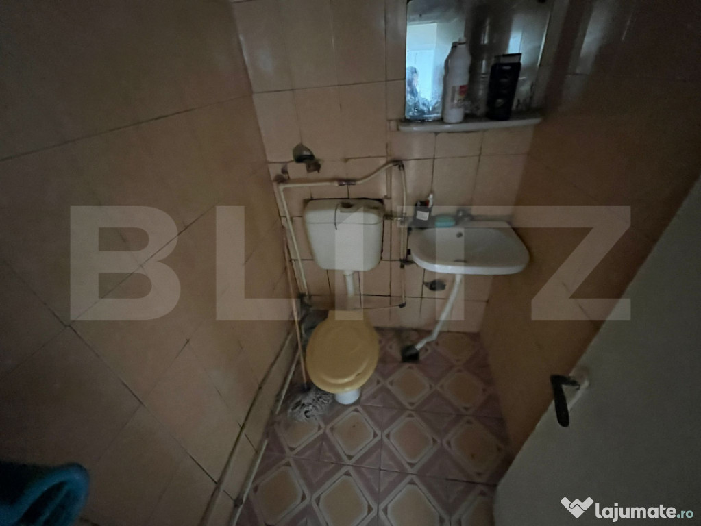 Garsoniera este nemobilată și necesită renovare, oferind însă posibilitatea de a fi locuită imediat sau amenajată complet după preferințele cumpărătorului.