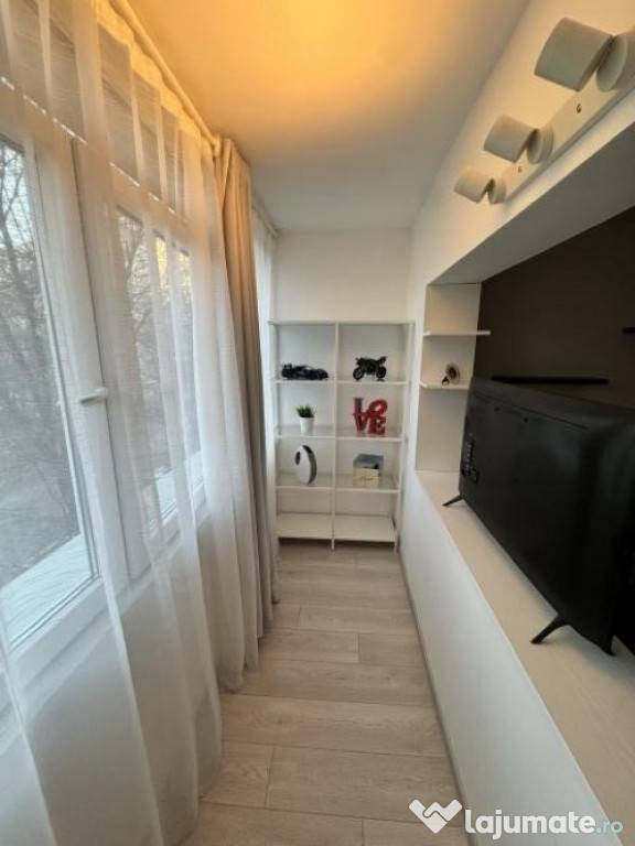 Apartamentul este complet renovat, mobilat și utilat modern, gata de mutare imediată. Balconul este unit cu camera, oferind un spațiu generos și aerisit.