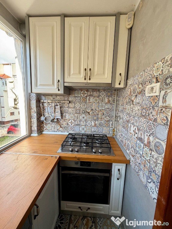 Oferim spre inchiriere Garsoniera confort 0 , situata Ultracentral , la parter , cu balcon inalt . Detine incalzire proprie, centrala gaz . Suprafata totala 40 mp . Este mobilata si utilata modern . Dispune de parcare auto . PRET 350 EUROVa asteptam la vizionare !