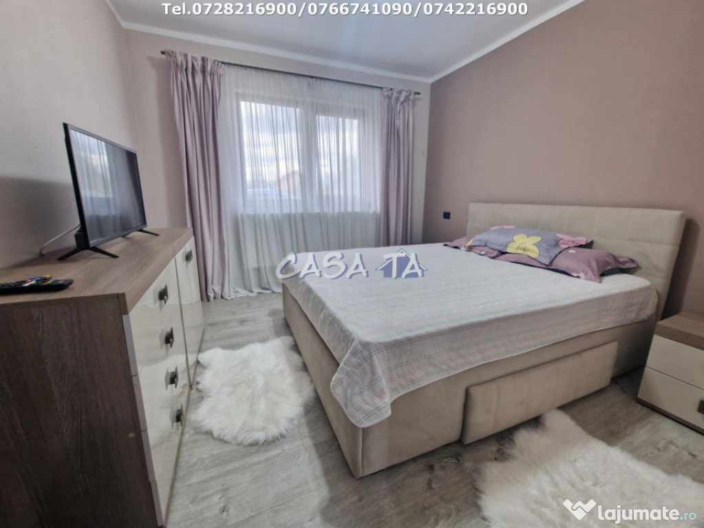 Agentia Imobiliara CASA TA ofera spre Vanzare Casa P+M, situata pe str. Ana Ipatescu. Imobilul este compus din: 3 camere + living, 2 bai, bucatarie, 2 balcoane, hol. Suprafata desfasurata este de 312 mp si teren aferent 516 mp, deschidere 23 ml. Utilitati: Apa curenta, gaze(in curs de desfasurare), fosa septica, curent electric, cablu TV, internet. Finisaje: Gresie, Faianta, Parchet, Glet/Lavabila,Scara interioara, garaj, terasa.(mansarda fiind semifinisata) , Centrala Termica de Inalta Performanta-GPL. Complet mobilata si utilata. Schimb cu apartament 2-3 camere, etaj 1/2/3 Pret: 156.000 Euro. Negociabil. Tel: ascunsId intern: P1801