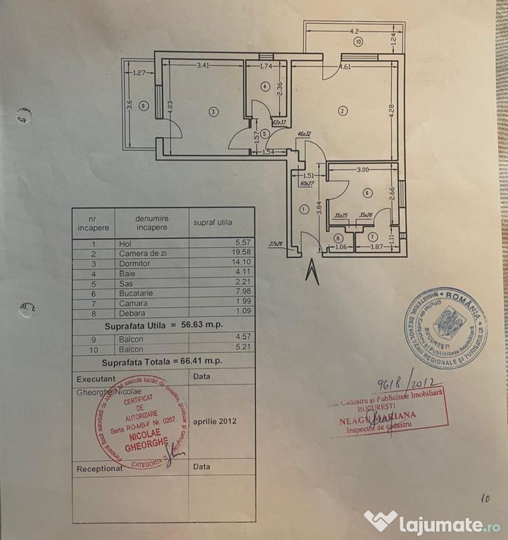 Suprafață totală: 66.4 mp, compartimentare semi-decomandată