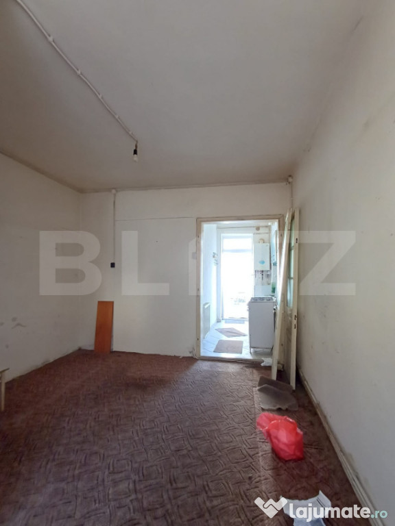 Blitz ofera la vanzare o garsoniera, la casa, in centrul orasului. Aceasta este situata la parter si face parte dintr-un imobil cu 4 locuinte, fiecare cu alee privata care face parte din proprietate. Suprafata utila este de 22 mp, compartimentarea se prezinta astfel: hol, 1 camera cu bucatarie open space, 1 baie cu geam. Garsoniera necesita renovare. Este dotata cu centrala termica si calorifere. Acoperisul este din tabla si exista posibilitatea de mansardare. La intrare exista o terasa mica, acoperita. De mentionat ca in proximiate se afla magazine, scoli, farmacii, fiind situata chiar in centrul orasului. Pentru mai multe detalii programeaza o vizionare!Cod ofertă / ID BLITZ: P158567