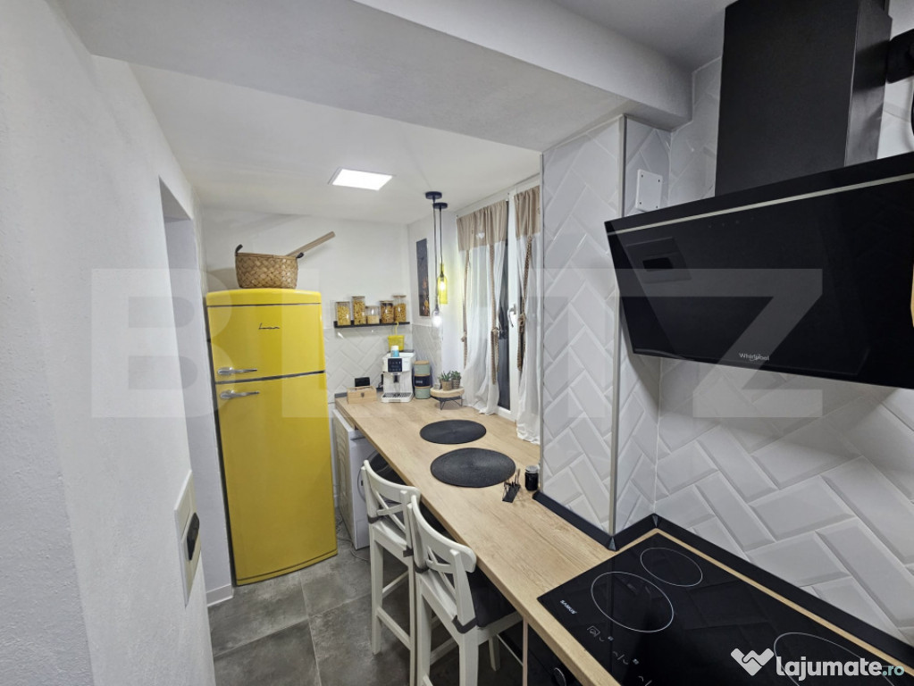 Blitz vǎ propune o garsonieră de vânzare, în Ocna Mureș, situată la parter, cu o suprafață de 41 mp, compartimentată practic și funcțional. Imobilul dispune de hol, baie, cameră spațioasă și bucătărie separată. Garsoniera este complet mobilată și utilată, amenajată într-un stil modern, fiind gata pentru mutare imediată. Poziționare excelentă, aproape de centrul orașului, cu acces facil la punctele de interes. În spatele blocului se află pădurea, oferind un cadru natural plăcut și liniște, într-o zonă retrasă, ideală pentru relaxare.Cod ofertă / ID BLITZ: P160887