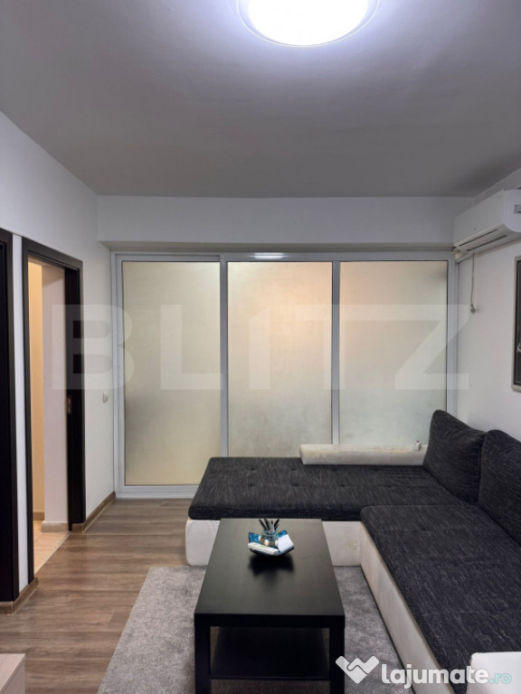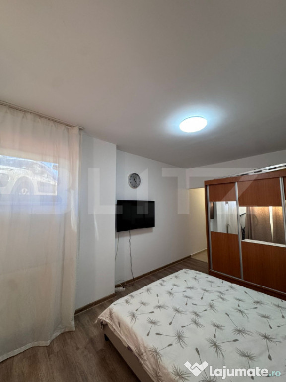 Blitz vă propune spre vânzare un apartament de 3 camere, semidecomandat, cu o suprafață utilă de 66 mp, situat la demisolul unui bloc nou, modern și bine întreținut.Locuința este inteligent compartimentată, oferind două dormitoare spațioase, o bucătărie complet mobilată și utilată, un living primitor, precum și două băi amenajate modern.