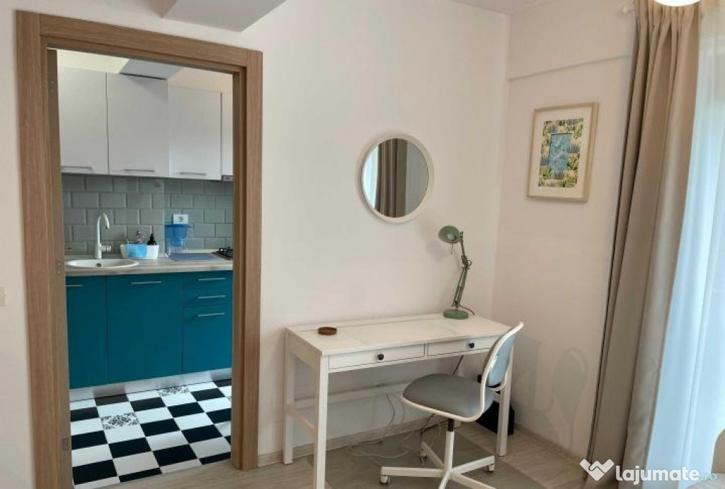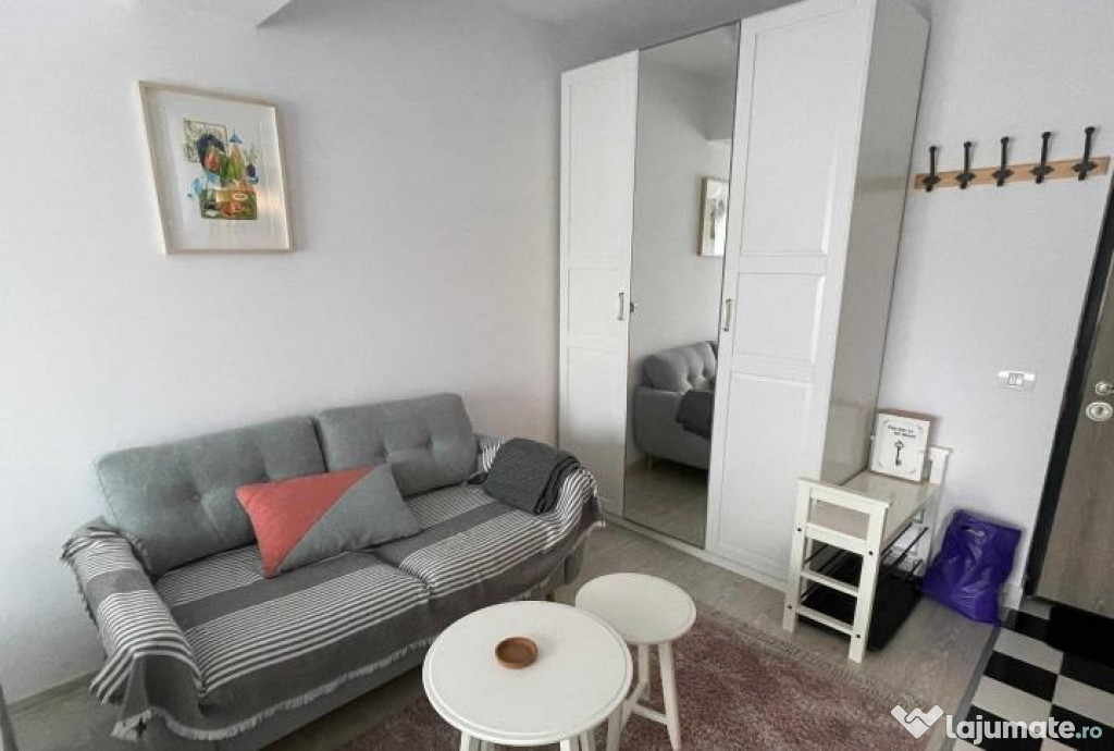 mobilata si utilata complet, cu pat dublu si canapea, bucatarie inchisa, birou, baie cu cada