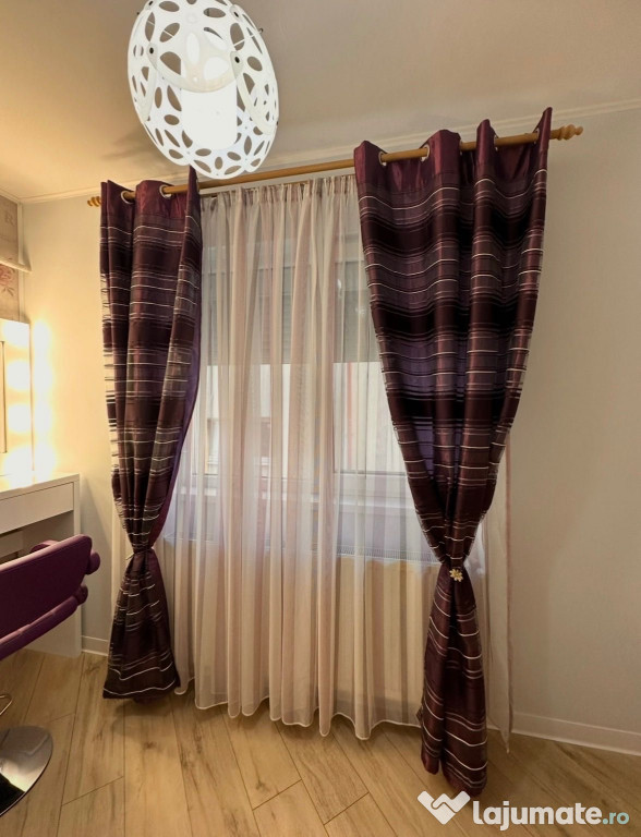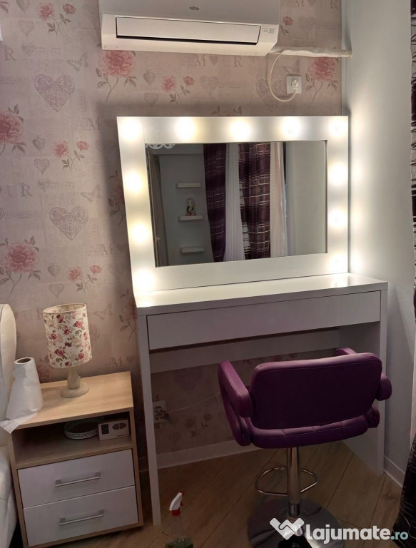 Dotari: rulouri exterioare pentru a face intuneric in orice moment al zilei,centrala proprie, aer conditionat,tv ,frigider+congelator, cuptor,hota,plita, cuptor cu microunde, prajitor de paine, masina de spalat rufe, masa de make up cu lumina , calorifer inclusiv pe balcon.