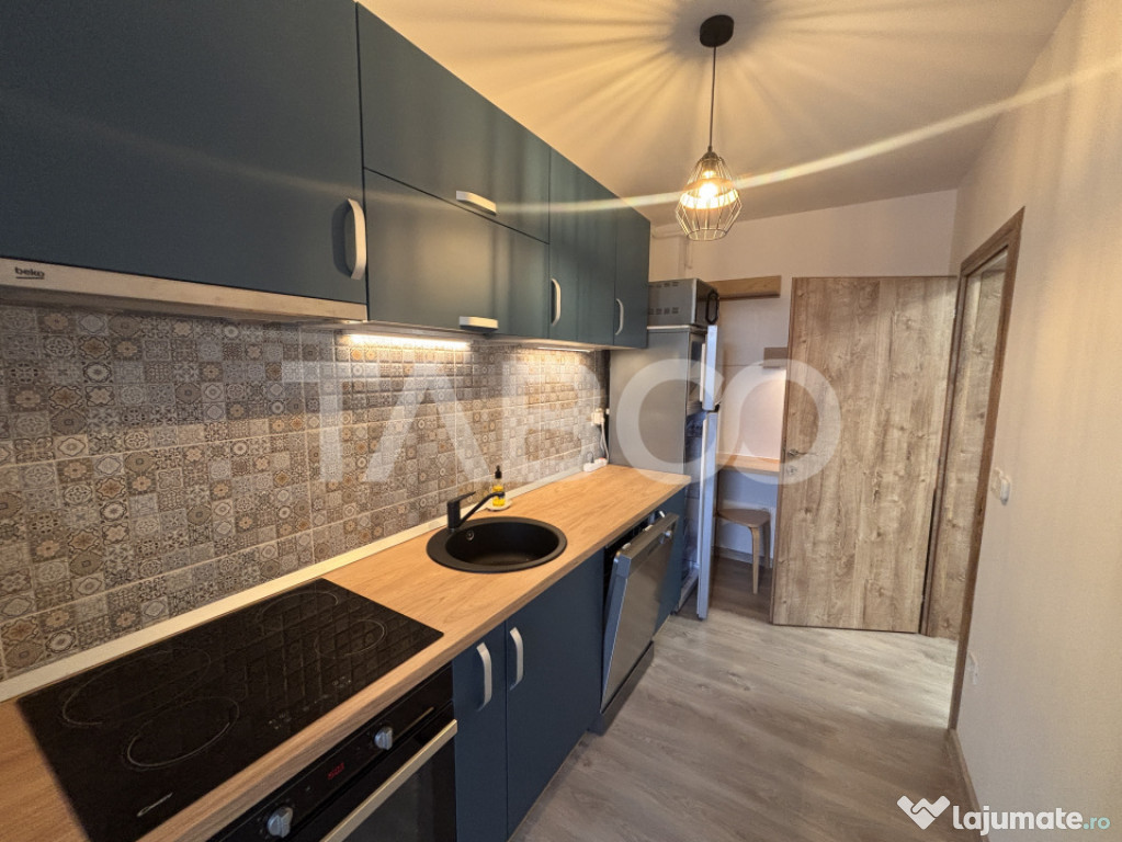 Garsoniera se vinde mobilata si utilata cu: plita electrica, cuptor, hota, masina de spalat rufe, masina de spalat vase, frigider cu congelator,