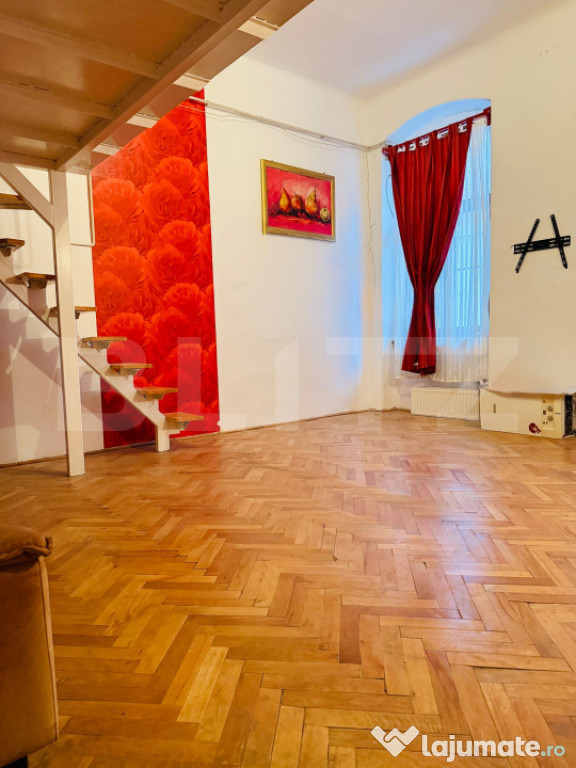 Garsonieră spațioasă, tip duplex, în centrul istoric al