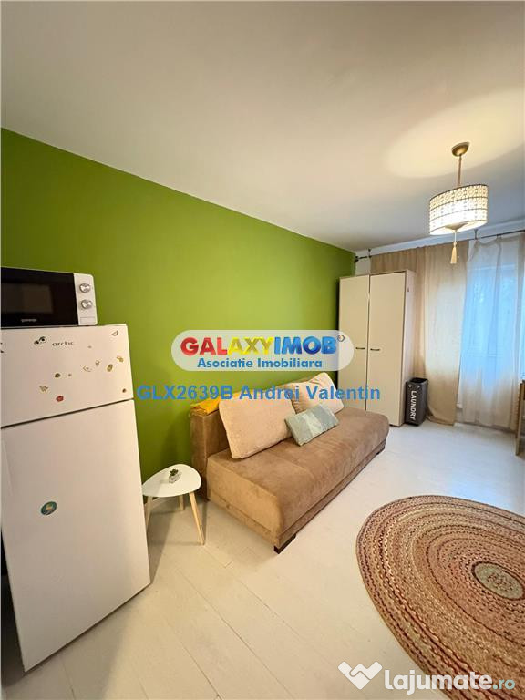 Agentia Imobiliara Galaxy Imob are garsoniera perfecta pentru tine! Iata si motivele: Este complet mobilata si utilata. Are un aer foarte calduros si primitor! Este calduroasa iarna, racoroasa vara, izolata termic exterior, termopane de buna calitate si vecini de treaba. Situata la etajul 2 din 4, beneficiaza de serviciu curatenie scara, supraveghere video si interfon. La doar cateva minute de mers pe jos se afla statia de metrou 1 Decembrie 1918, accesul catre centrul orasului se face foarte rapid si usor. Este intr-o zona foarte linistita, aproape de magazine Lidl, Mega image, Farmacie, si alte utilitati la doar 50m.Se preteaza pentru o persoana singura, cu venit stabil, fara animale de companie si care pastreaza curatenia.