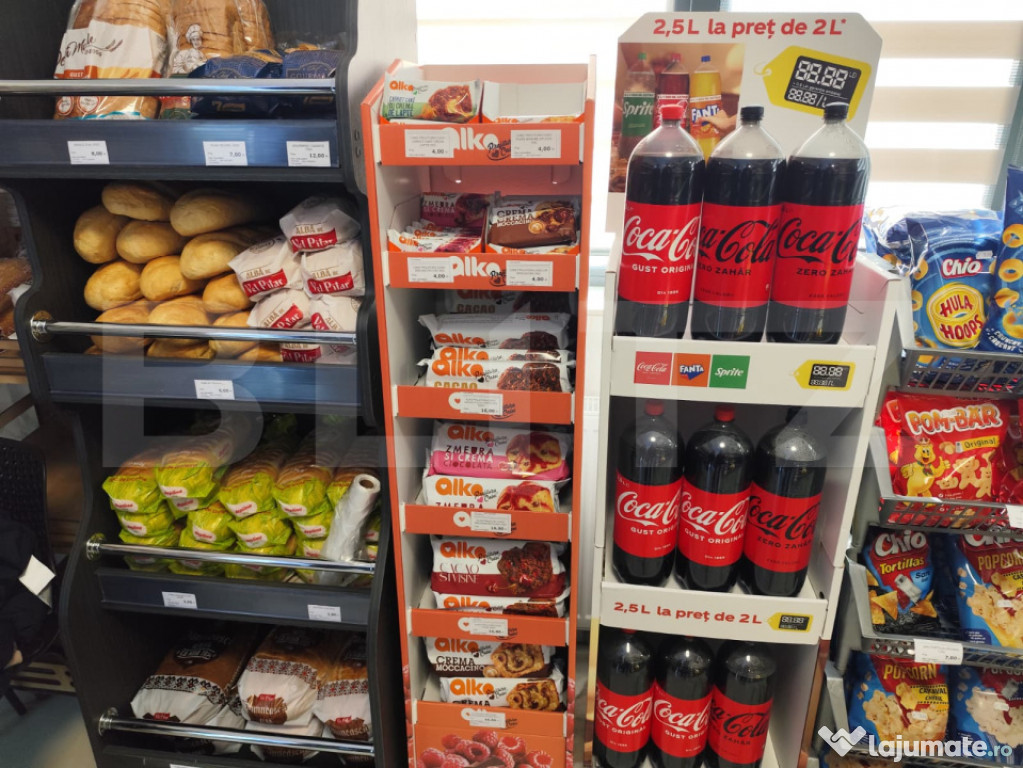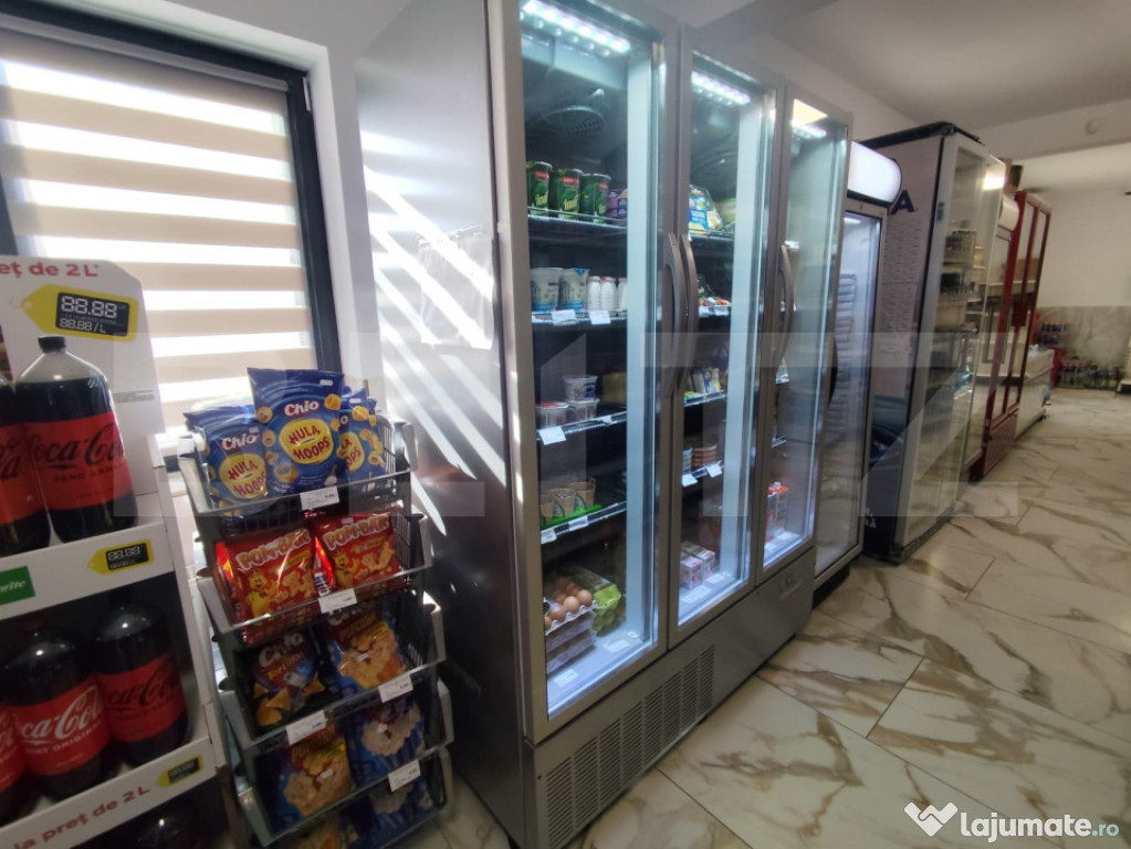 Magazin -mobilat si utilat, frigidere, congelatoare, rafturi, Sistem casa marcat cu scaner si soft( 2 buc), se predau ambele cu totul, echipamente, softuri, inclusiv contracte de furnizori marfa;