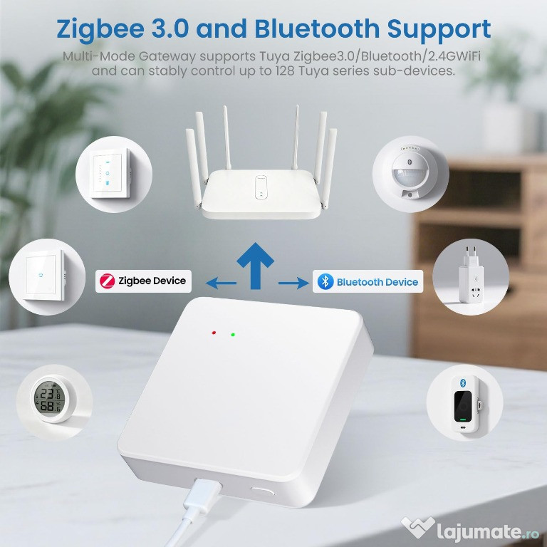 Anuntul Gateway Hub ZigBee 3.0 WiFi, Tuya / SmartLife, compatibil iOS, Android este adaugat de pe LaJumate.ro.