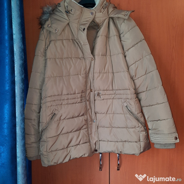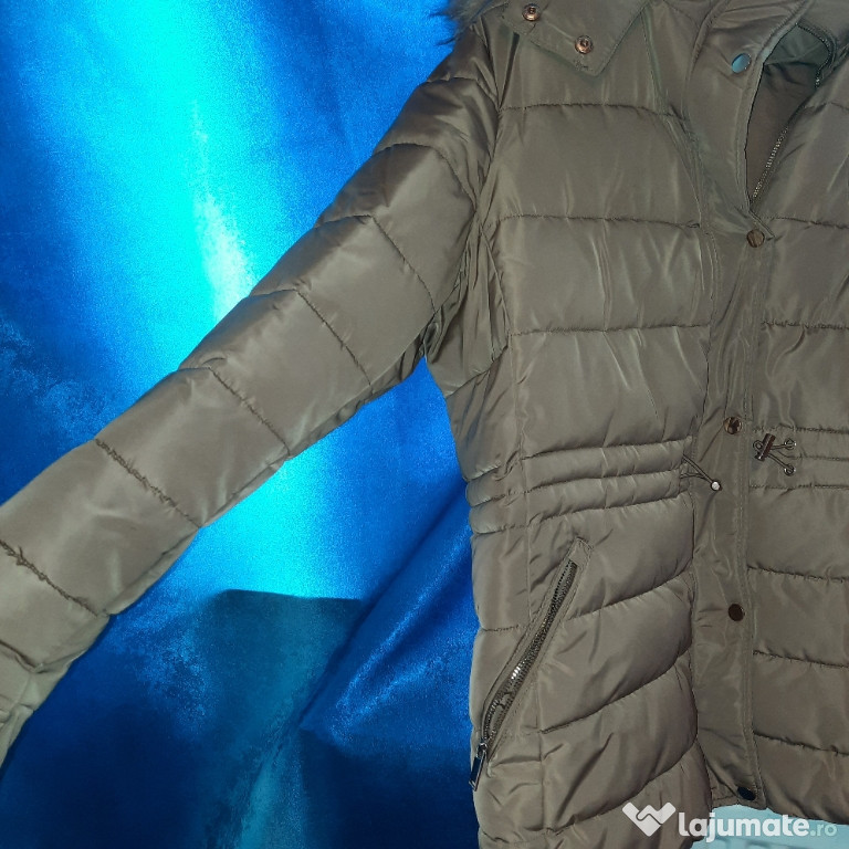 Geacă groasă cu blăniță. Nouă, fără defecte.În poza din magazin eram slabă, comparativ cu acum. Am cumpărat-o. Am purtat-o câteva zile(3) într-o vacanță scurtă, pentru că aveam altele de zi cu zi. Acum am probat-o și, din păcate, nu îmi mai este pe măsură.