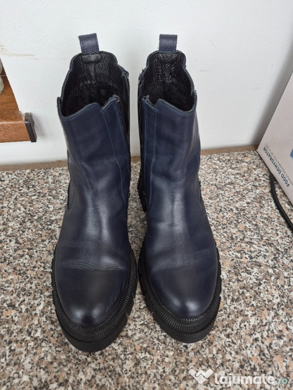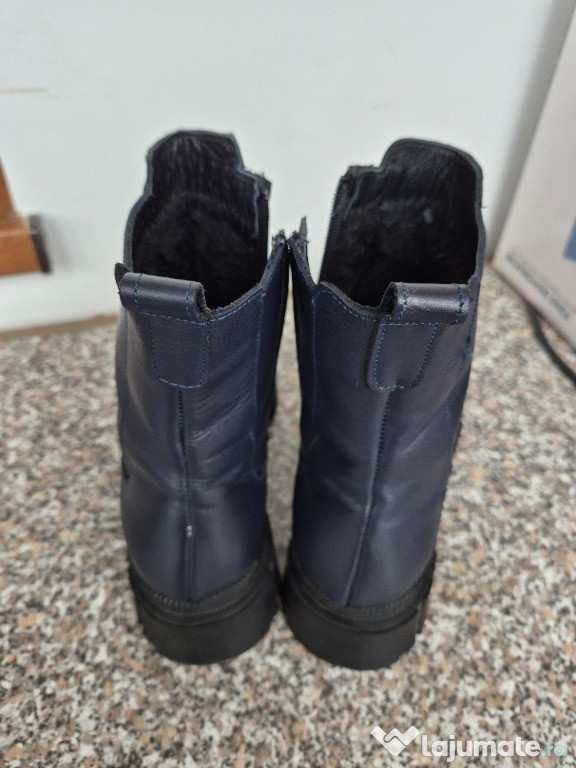 Ghete de damă, înalte, culoare albastru, de iarnă, cu blană în interior, cu talpa groasă, din piele naturală.Anuntul Ghete de iarnă, damă, piele naturală este adaugat de pe LaJumate.ro.