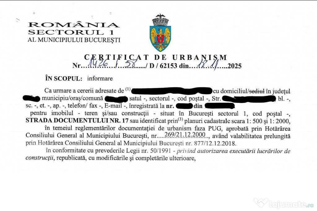 Am obținut de curând si un certificat de urbansim de informare, pe care îl pot trimite la solicitarea dvs.