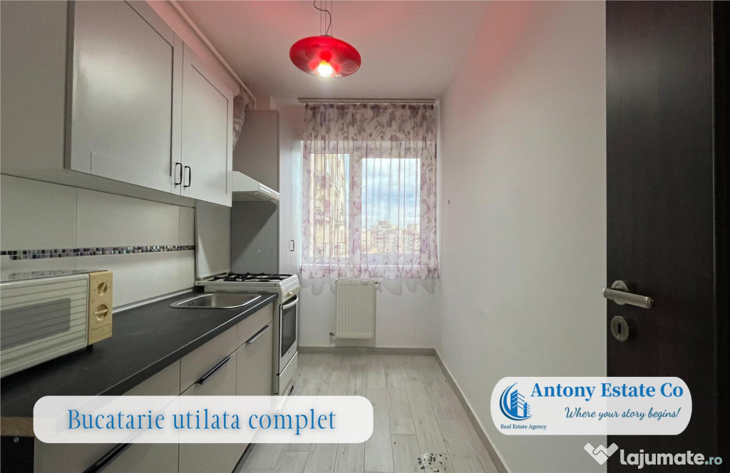 Proprietarul pune la dispozitie viitorului nou chirias urmatoarele utilitati: electrocasnice, cuptor, frigider, masina de spalat rufe, cuptor cu microunde si intregul mobilier ce se vede in poze.