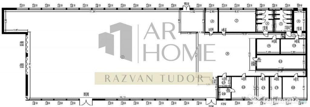 Compartimentare: hala open space , receptie ,spatii birouri , 2 grupuri sanitare cu dusuri.