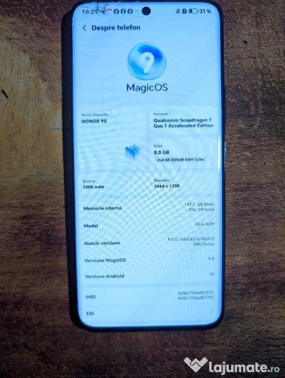 Anuntul Honor 90 (8GB/256GB) - Funcționalitate 100% / Ecran Fisurat este adaugat de pe LaJumate.ro.