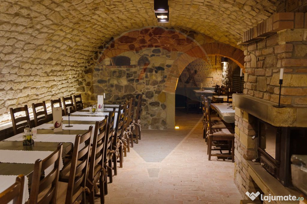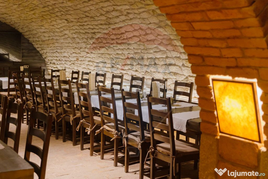 Ansamblul include un hotel boutique de 3 stele, cu 11 camere (două apartamente, opt camere duble, o cameră single), dotate integral și modernizate constant – saltele memory foam, textile premium, climatizare centralizată și echipamente media de ultimă generație. Spațiile de alimentație publică formează o structură echilibrată și foarte bine poziționată pentru evenimente și flux gastronomic: restaurant cu 50 de locuri, cramă unică în Centrul Vechi (45 locuri, cuptoare tradiționale pe lemne), cafenea boemă, terasă generoasă cu posibilitate de extindere. Toate spațiile dispun de sisteme profesionale de iluminat, sunet, șeminee, infrastructură tehnică completă și design coerent.