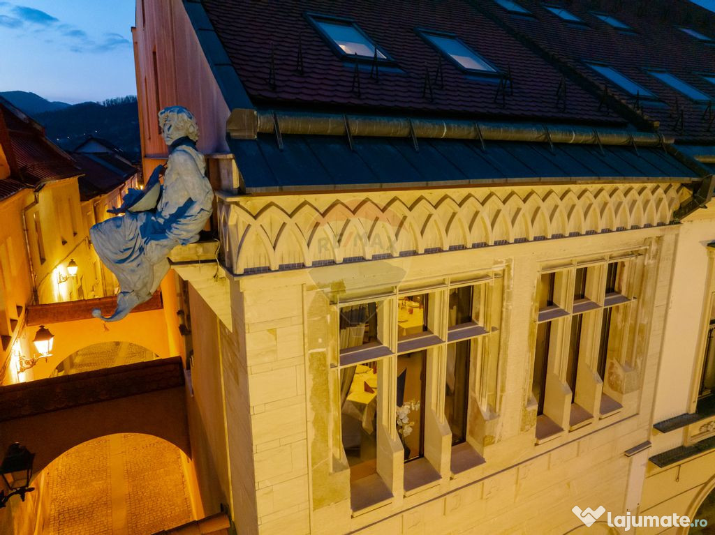 Se oferă spre achiziție un ansamblu de ospitalitate premium, integrat într-o clădire monument istoric cu rădăcini datate din secolele XIV–XVI, complet restaurată în perioada 2004–2011 la un standard arhitectural superior. Situată în Piața Libertății din Baia Mare, singura clădire din zona 0 a Centrului Vechi care oferă camere de cazare, proprietatea reprezintă un activ rar pe piața ospitalității din România, îmbinând valoarea patrimonială cu funcționalitatea modernă și potențialul comercial ridicat.