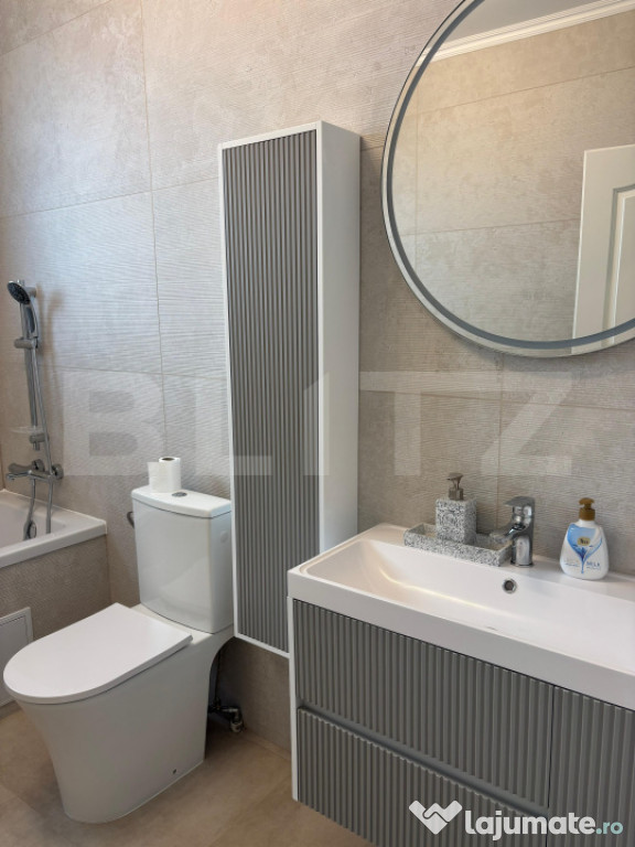 • Bucătărie complet utilată – electrocasnice noi, mobilier modern