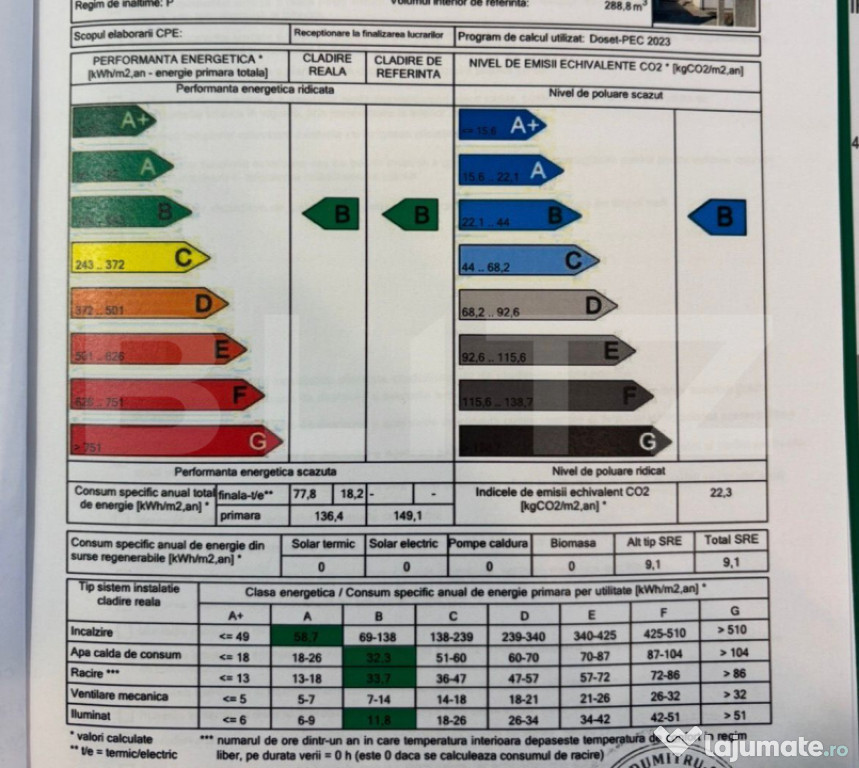 • Întreaga casă este nouă, amenajată cu materiale de calitate superioară și pregătită pentru mutarea imediată, încălzirea se face prin pardosea, centrala proprie pe gaz, sisteme de aer condiționat montate in fiecare camera.