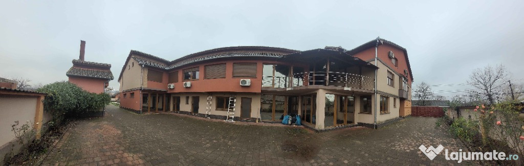 Imobil cu 3 case: C1:Parter:2 camere; hol; bucatarie cu debara; baie; Etaj1:4 camere; baie; Etaj2:4 camere; bucatarie; C2 lipit de C1: Parter: 5 camere; hol; Etaj: 3 camere; hol; bucatarie cu debara; baie; C3:baie; bucatarie; camera tehnica; afumatoare; C4: baie; bucatarie; camera; C5-cotete; Piscina; Foisor. Curte dalata; Imobilul cu utilitati: apa; canal; gaz si foraj apa. Gradina cu pomi fructiferi. Curte mare-6 masini. Casele C1-C2 pot fi amenajate: restraurant; pensiune sau 6-8 apartamente. C1-Casa P+E+M cu S. construita la sol=160 mp, S. construita desfasurata= 449 mp; S.utila= 369.8 mp; C2-Casa P+M cu S. construita la sol=126 mp, S. construita desfasurata= 276 mp; S.utila= 226.6 mp; C4-Casa P cu S. construita la sol=66 mp.Anuntul Imobil cu 3case:C1-3 nivele;C2-2nivele;C4-1 nivel;C3;C5;Piscina;Foisor este adaugat de pe LaJumate.ro.