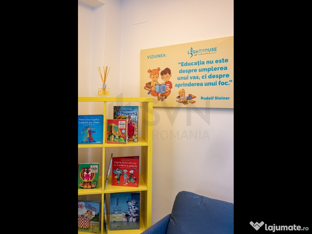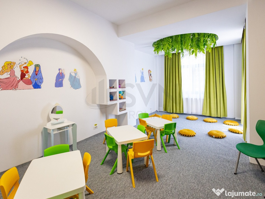 Compartimentare practica, adaptata nevoilor unei gradinite: sali de clasa spatioase si luminoase, grupuri sanitare multiple, spatii de joaca/interactiune, birouri administrative.
