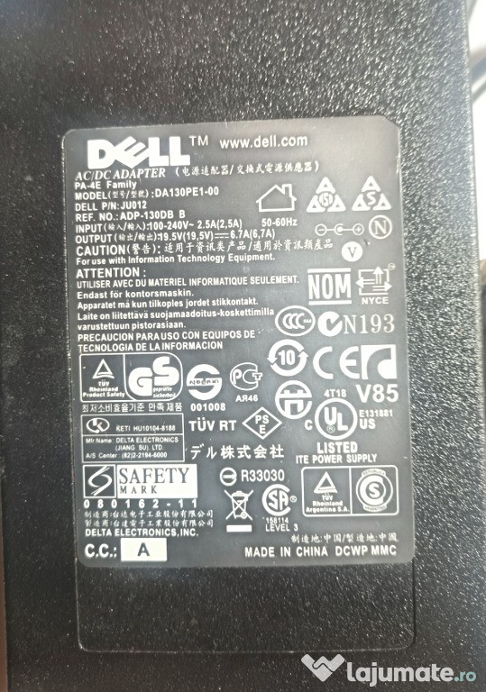 Anuntul Incarcator original laptop Dell 19.5V 6.7A 130W mufa 7.4x5.0x12.0mm este adaugat de pe LaJumate.ro.