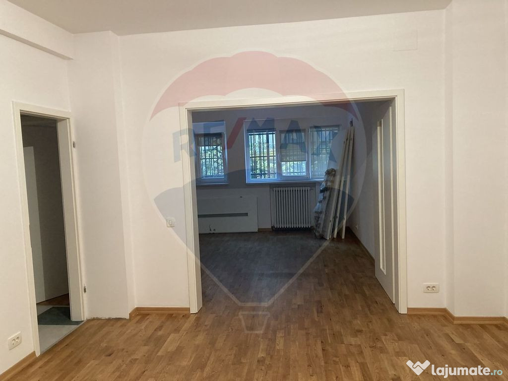 Spatiu ideal pentru sediu firma, cabinet sau birou profesional sau chiar si familie care prefera un apartament sa il mobileze dupa bunul plac.Apartament de 3 camere, 87 mp utili, complet renovat, situat la parter intr-un bloc interbelic din zona Piata Romana - amplasare excelenta, legaturi cu multe mijloace de transport.