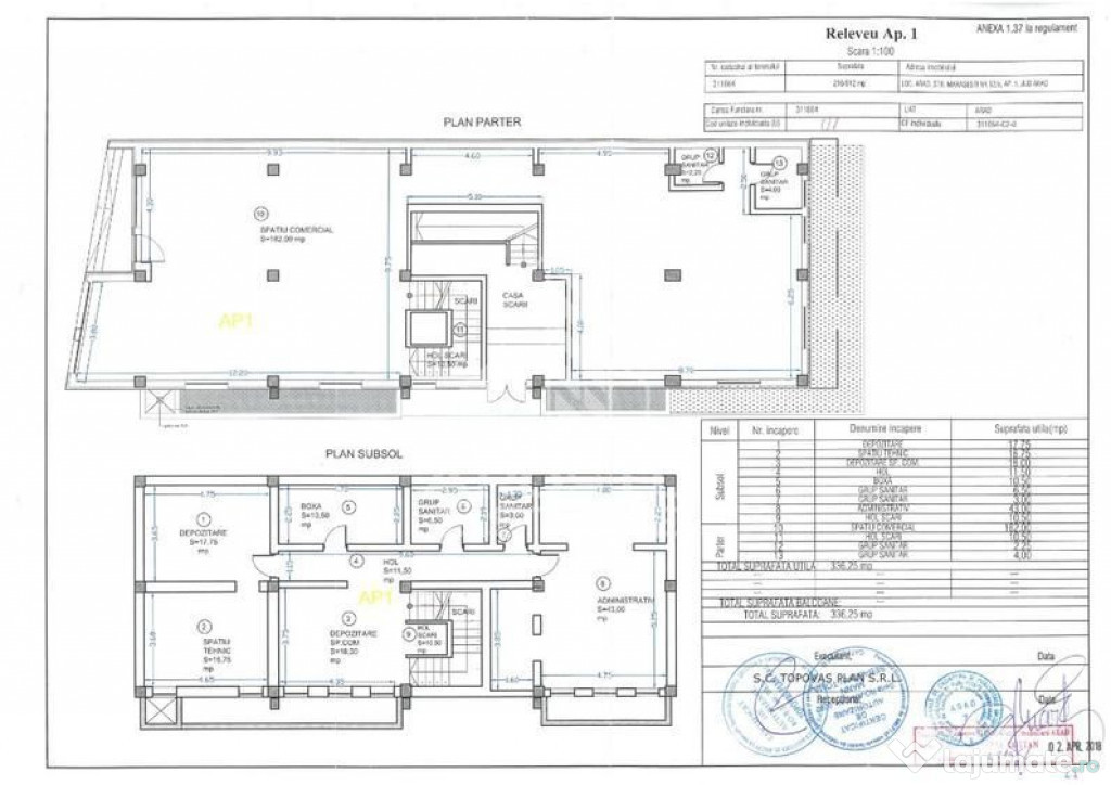 Suprafață totală 336 mp, dispusă pe 2 niveluri (conform schițelor)