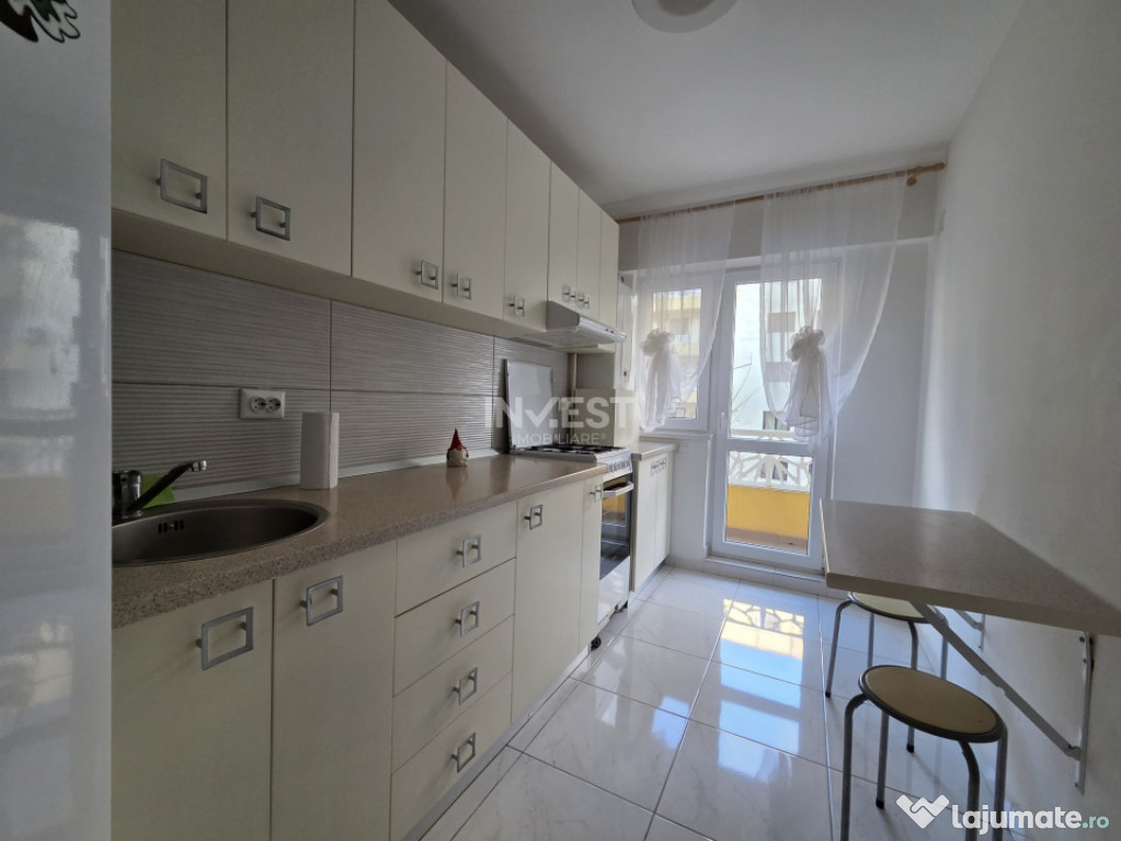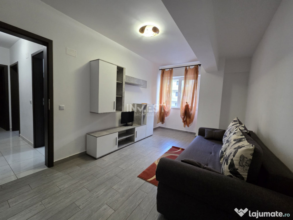 Agentia Invest Imobiliare va propune spre inchiriere un apartament de 2 camere, modelul decomandat, situat la etajul 1 intr-un bloc nou cu 6 nivele.Apartamentul dispune de: