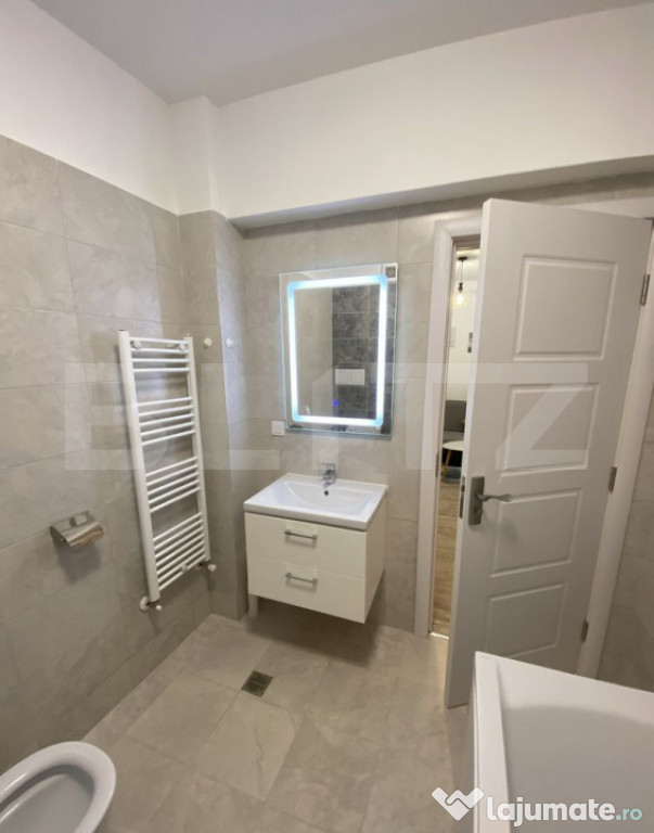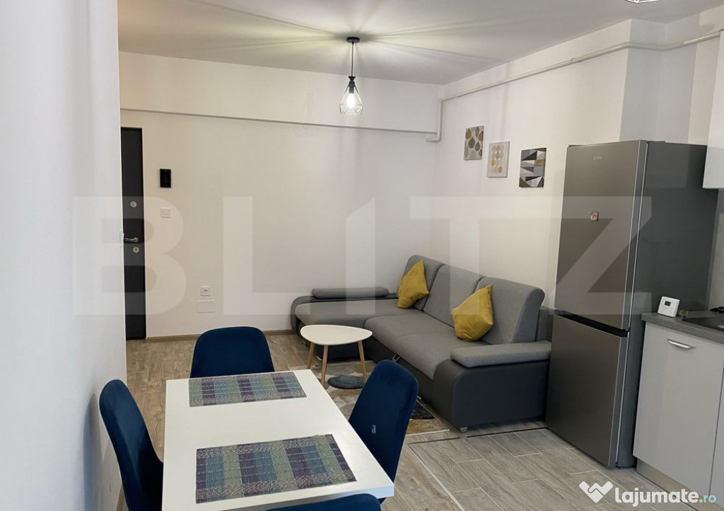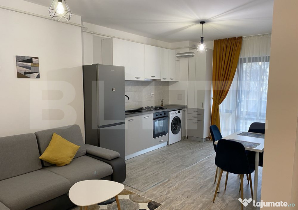 Bucătărie echipată, baie modernă și finisaje de calitate.